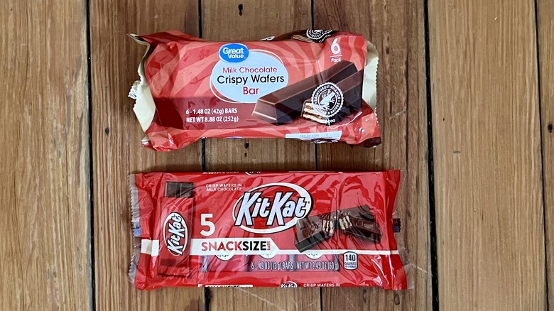 Verdict: Great Value certainly presents great value with its Milk Chocolate Crispy Wafers, but your five fingers will probably enjoy the original four-fingered king, KitKat, much more.