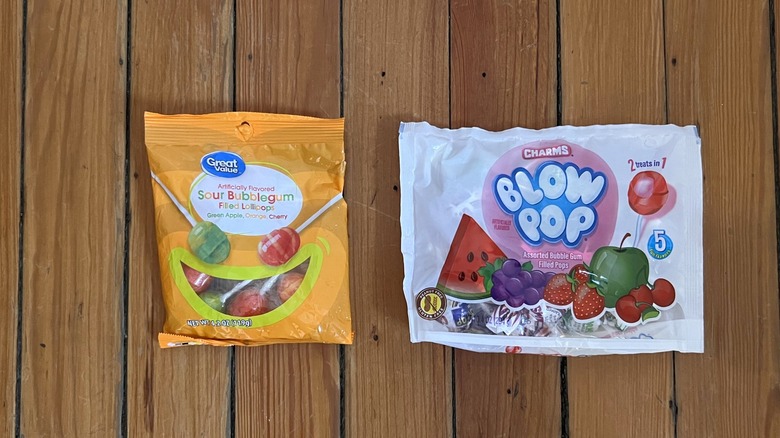 Great Value Sour Bubblegum Filled Lollipops vs Blow Pops