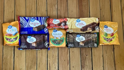 It's nice Mars offers so many kinds of nougat bars. Sadly, the names can get a little confusing depending on what country you're in. This is especially true of the Milky Way bar. Overseas, the Milky Bar is all nougat, and is basically a 3 Musketeers. The American Milky Way has nougat covered with caramel, and across the pond it's called a Mars bar. Confused yet? This is actually where Walmart's straightforward naming convention works best, as you know exactly what you're getting when you buy the Great Value Caramel & Nougat Bar.