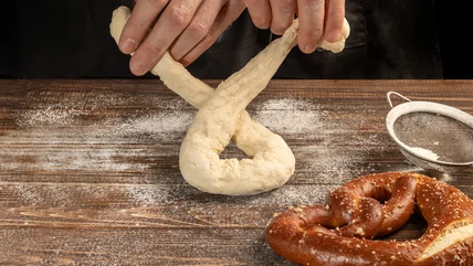 There are a few ways to create a pretzel shape, but no matter which route you take, there are a couple of mistakes to be aware of. First, people often don't follow the directions carefully enough, leading to the pretzels falling apart during the boiling process. Remember that you need to lift and transfer the raw pretzels to the baking soda bath and back to the tray, so they need to be somewhat secure in how you fold them.