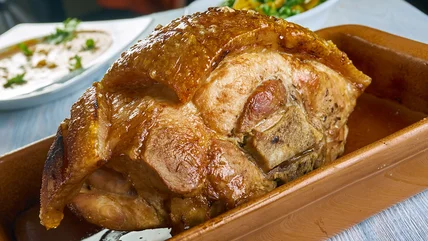 Why pork shoulder and not a different cut of pork, like a belly or loin? It's all in the fat. Pork belly has a large amount of fat, ideal for slow roasting. But a pork shoulder is best for steeping in a marinade and creating the star of the dish: the crackling. It's cheaper, too, so kinder to your wallet when feeding a crowd. The shoulder is full of connective tissue and fat, so look for veins and marbling when picking out a pork shoulder for the best results. During a slow roast, all the cartilage and fat breaks down, drenching the joint in fat and keeping the meat moist. If a pork shoulder is undercooked, it'll be tough and chewy and won't pull apart because the connective tissues between the muscle fibers won't have broken down. Time is essential for getting a tender pork shoulder that falls apart at the mere sight of a fork.