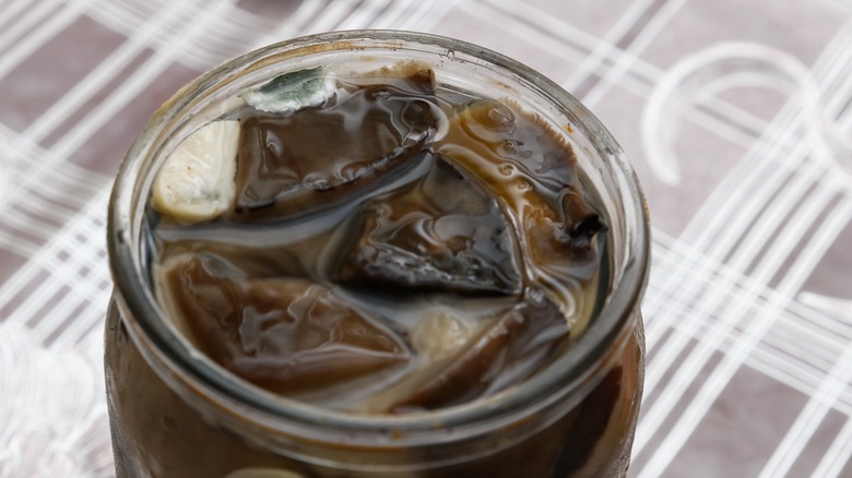 You might think that fermented garlic cloves, which have taken on a bluish or greenish hue, might be unsafe to eat, but that's not the case; they are a perfectly safe by-product of the fermentation process. Instead, look for irregularities such as crystallization or cloudiness — these can be an indication that there's moisture in your mixture, which could pose a risk for potential contamination. Also, keep an eye (and nose) out for off smells, the presence of mold, or a mushy or slimy texture – these are all signs that things are not well with your fermented garlic. You should be able to notice them right away.