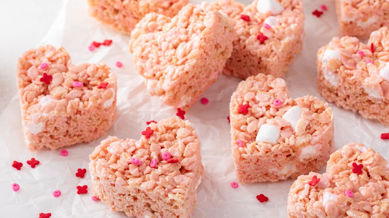 The delicious spins on Rice Krispies don't stop at adding tasty layers to the flavor profile. You can customize these treats for special occasions as well. Warm your partner's heart on Valentine's Day by using cookie cutters to make heart-shaped Rice Krispies with pink, red, and white sprinkles. If someone you know is celebrating another year on Earth soon, then make birthday Rice Krispies treats for their big birthday bash. When St. Patrick's Day rolls around, use your cookie cutters to make Shamrock Rice Krispies treats for a tasty celebration. Just don't forget to mix in sweetened condensed milk.