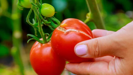 Like other fruits, tomatoes can crack and split as they ripen due to heavy rain, temperature fluctuations, or sudden changes in soil moisture. The same can happen when humidity levels are higher than normal. These problems may result in radial or concentric cracks on the fruit surface.