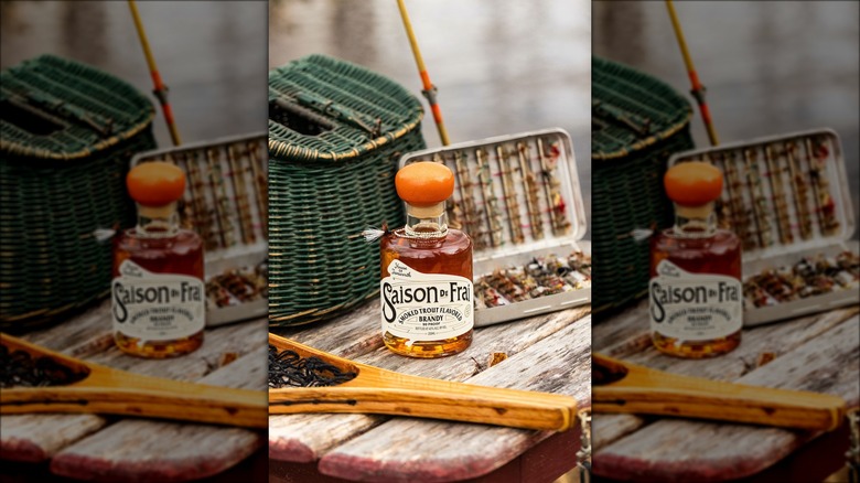 Stateside, New Hampshire's Tamworth Distilling hawks, among other environmentally minded concoctions, bourbon infused with green crabs — a clever use for an invasive species that otherwise "wreaks havoc on our coastal ecosystem," per the brand's website. Tamworth likens the spirit's flavor to the spice-laden low country boils of the South, thanks to the inclusion of corn, coriander, bay leaf, and warming spices like clove and allspice. The distillery has since introduced an "ember-kissed trout distillate" to its Saison de Frai apple brandy, complete with trout roe for a boba-like drinking experience.