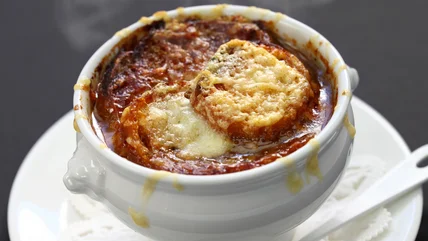 Cognac is an important ingredient in French onion soup, as popularized by Julia Child, so it's probably the main soup that comes to mind when many people think of adding liquor. But it's definitely not the only one that can benefit from this boozy hack. As with your holiday gravy, cognac can improve just about any creamy or meaty soup that's chock full of rich, hearty flavor. Try it in your beef, lamb, or veal stew for superior balance. Although, any style of stew can be improved with a splash of cognac if you're willing. Don't forget clam chowder, either! And like stew, just about any thick, creamy chowder or seafood bisque will get the ultimate kick from a dash of the stuff.
