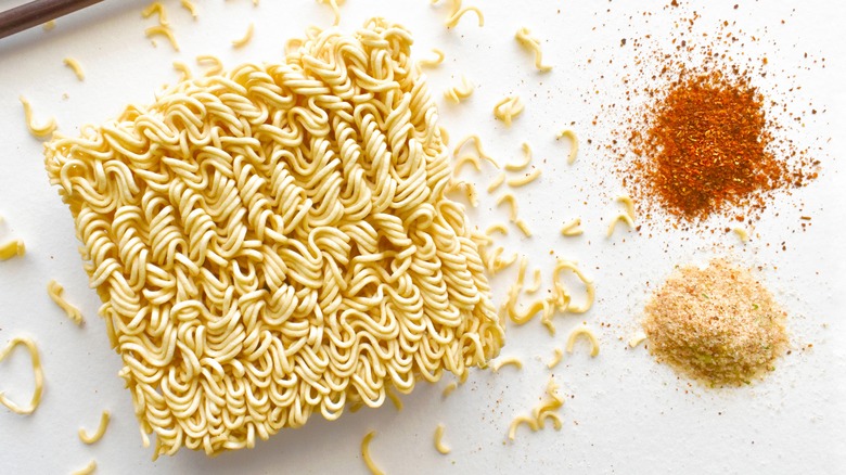 The difference here is that this preparation isn't about utilizing leftover cooked noodles, but the dry, still-crispy kind. Packaged ramen, being thin and crimped and crunchy, is an ideal shape, size, and texture for this process. And while they do soften a bit during cooking, you still wind up with that super satisfying toothsome factor that makes this dish so unique.