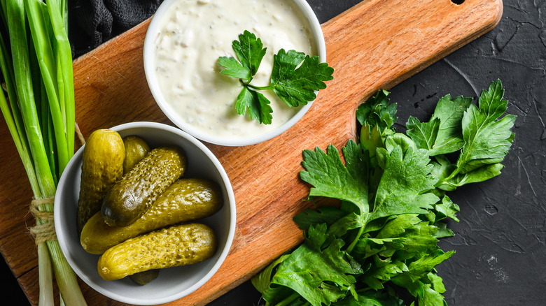 As far as toppings for bagels or fillings for sandwiches go, a cream cheese schmear is certainly up there on the popularity scale. However, like many of us, you may be forgiven for wanting to elevate the plain flavor of cream cheese from time to time. While one way of getting restaurant-quality cream cheese is by adding a little seltzer, today we have another nifty trick to share. All you need is chopped pickles to take your plain cream cheese to a tangy level of awesome, thanks to the sour taste of the pickles.