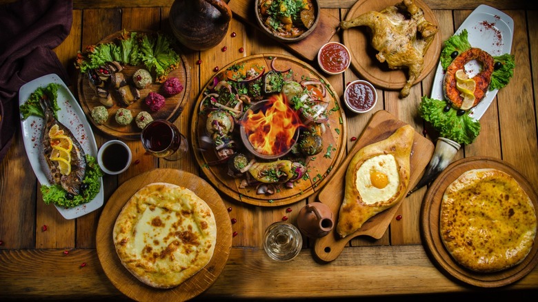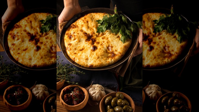 Georgian cuisine is a heady mix of European and Asian influences, due largely in part to the country being under occupation by different nations throughout history, including Mongol, Roman, Ottoman, Russian, and Persian forces. So it's little wonder that khachapuri feels influenced by both these cuisines — part pizza or flatbread and part naan bread.