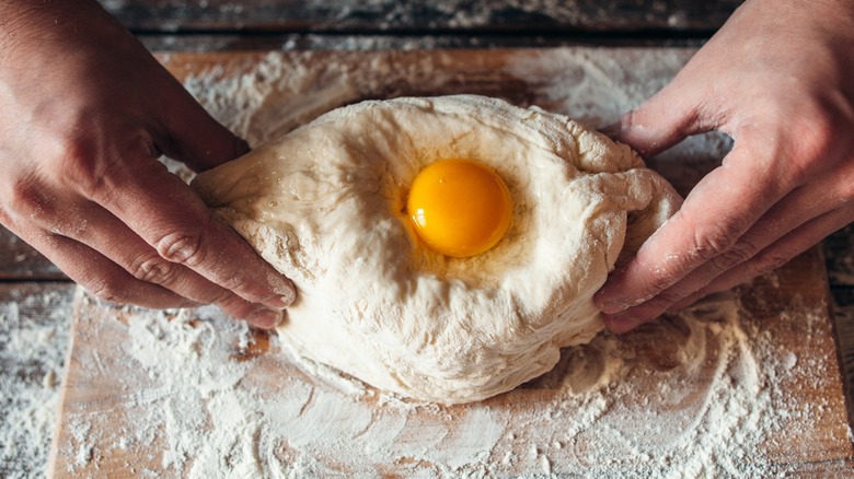Can't find sulguni in your neighborhood? Amazon sells traditional smoked sulguni, so you can have it shipped to your door. You can also sub a mix of mozzarella, feta, and ricotta, if all else fails. All you really need to make khachapuri at home is pizza dough, eggs, butter, and a variety of cheeses.