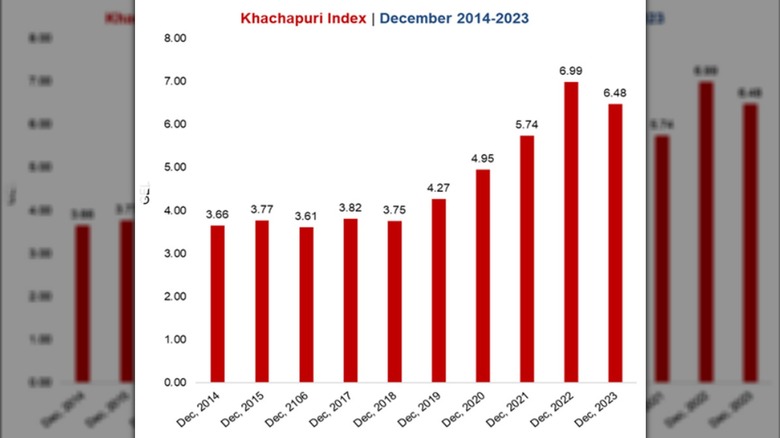 With a rich history and a multitude of regional varieties, there's no doubt that khachapuri holds a central position in Georgian culture. But khachapuri isn't just a delicious cheesy treat — now, it's also an economic symbol. The popularity of this beloved Georgian bread, which is a staple in households throughout the nation, has prompted researchers to use the dish as a metric for cost of living.
