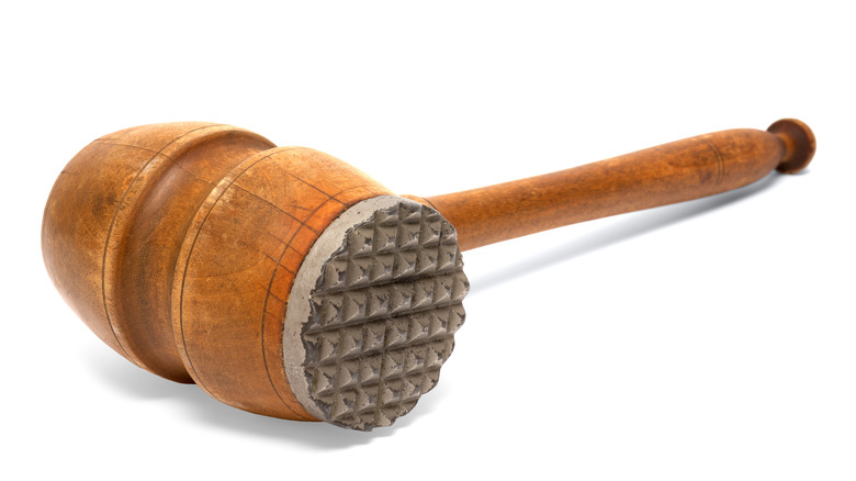 As with just about every cut of beef, marinating skirt steak is a great way to tenderize it while locking in an abundance of flavor — but you can also manually tenderize it with a meat mallet. And if you don't feel like marinating it or adding a meat rub afterward, a few splashes of soy sauce and a sprinkling of garlic powder will give that tenderized skirt steak an immense flavor without too much work.