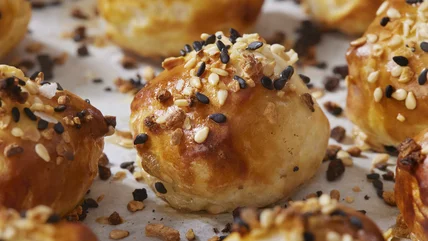 While pinpointing its exact conception is rather nebulous, everything bagel seasoning rose to popularity in the 1980s when David Gussin from Long Island began to sell bagels garnished with a combination of all of the toppings. Fast-forward, and this seasoning blend fills store shelves in the form of snack bars, popcorn cakes, and beef jerky. Even Pringles brought out a limited-edition Everything Bagel flavor! With these applications, you may ask, "Is there anything this seasoning can't do?" Well, when it comes to topping your puff pastries, there's no debate — it's another perfect match.