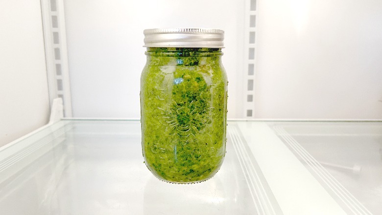 Transfer the herb oil to a cleaned and sanitized mason jar and seal. Store the finished herb oil in the refrigerator. Note: If you prefer smooth herb oil, strain it through a coffee filter or cheesecloth before sealing it in the mason jar, but this is unnecessary.
