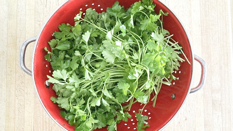 Herb-infused and herb oils rely on fresh, clean, dry herbs. The last part is crucial. Since water repels oil, you cannot get them to marry with it in either of these. The best way to clean herbs is by using a salad spinner. If you do not own one, rinse your herbs in cold water in a colander, shake off excess moisture, and pat them dry with paper towels.