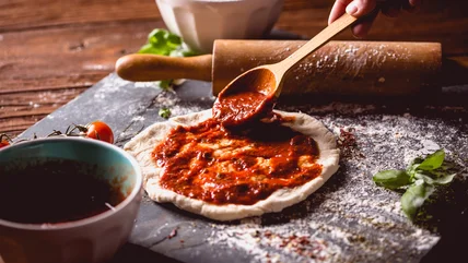Next time you're looking for a deeper flavor profile from your store-bought pizza sauce, add a splash of red wine. Choose one that is only slightly sweet, balanced by a tannic, dry finish, which will pair nicely with tomatoes' combination of acidity and sweetness. And if you let it simmer in the sauce for a while, the flavors will meld and develop, and you'll (almost) feel like you're dining al fresco on a vineyard patio.