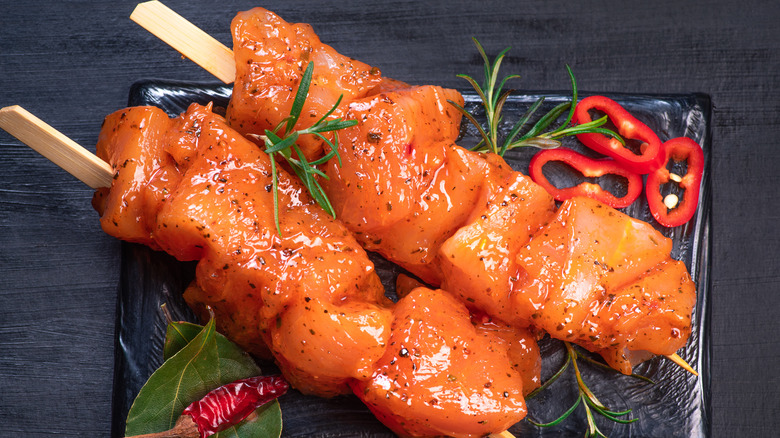 Although you could use it in its original state, a duck sauce is fairly mild all on its own. Typically, it's made from fruits like plums, apricots, and peaches — or a combination of the three — along with vinegar, sugar, ginger, and sometimes chili peppers. But none of those flavors jump out at you in an obvious way right out of the packet, which means a duck sauce marinade is best when paired with other ingredients.