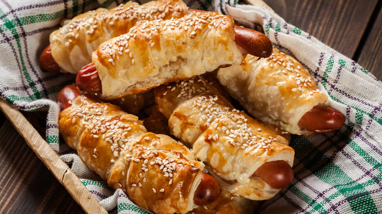As for The Barefoot Contessa, puff pastry has inspired its way into many of her other comfort food staples as well. She layers slices of ham and cheese with it for an elevated Hot Pocket, if you will. She rolls it with butter, cinnamon, raisins, and brown sugar to make easy sticky buns, and she even uses puff pastry to roll up and bake hot dog wieners.
