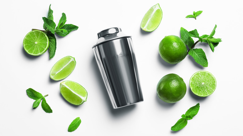 If you're craving more minty flavor in your mojitos — but still want to avoid the bitter taste that comes with muddling — not all hope is lost. There is an easy way to bring out the cooling sensations of mint: just throw a few mint leaves in your cocktail shaker. When you reach the step in the cocktail-making process where you throw your ingredients in a shaker, pick a few mint leaves off of the stem and throw them in there too. Now you can shake this all together, strain everything into a glass, and reap the benefits of that added chilled mint flavor.