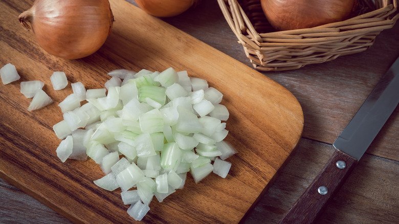 You could take Rachael Ray's sound advice and endure this inevitable onion reaction, but people don't necessarily work that way. There will always be those looking for tricks of the trade, and with onions, there are a few. But nothing will completely render the onions' acidic powers inert, of course. These vegetables pack a punch. However, there are a few onion hacks that can make time in the kitchen less tearless and more palatable.