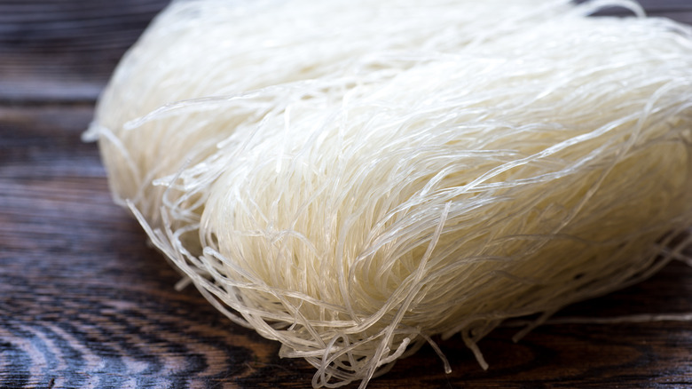 Anything starchy and delicate will work; look for noodles about the size of angel hair pasta. We mentioned cellophane noodles, which can be made from mung bean starch or sweet potato starch, among other things. These will provide a visually transparent, absorbent, and slightly chewy feature, which is perfect for the dish. In addition, the Vietnamese noodle known as bún (also called rice vermicelli or rice stick) will do wonderfully well in fāloodeh.