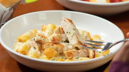 "Fritta" in Italian translates to "fried," so think of this dish as a fried Italian-inspired twist on a classic fried cheese appetizer: Mozzarella sticks. Stuffed ziti fritta takes ziti noodles, fills them with five different kinds of cheese, and fries each cheesy pasta whole. And as a bonus, when you order ziti fritta at the restaurant chain, it'll come served with marinara and alfredo sauce for dipping. Now classic baked ziti has transformed into an even crispier, even cheesier bite!