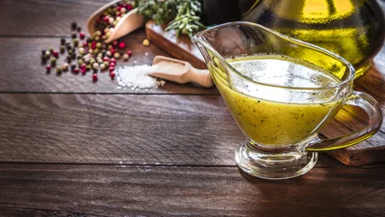 When it comes to freezing salad dressing, generally vinegarettes work best. Vinegarettes are a fusion of vinegar and oil and will freeze well because they're temporary emulsions. Temporary emulsions are two ingredients that temporarily join together before separating. However, there are two types of salad dressing that you should probably reconsider freezing. You shouldn't freeze a salad dressing if it has a permanent emulsion. Think mayonnaise-based salad dressings. Mayonaisse is a combo of oil and egg yolks with vinegar, permanently fused. However, when you freeze a permanent emulsion, its ingredients separate during the freezing process which ruins the salad dressing.