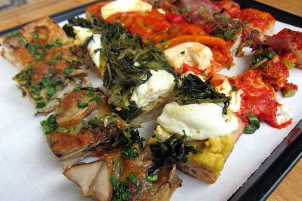 Gabriele Bonci is one of Rome's most famed pizzaioli, and the Roman-style pizza he serves at Pizzarium is the reason why. The slow-leavened dough is made with a sour dough starter, and the result is a crust thicker than the Romans are used to. Bonci's rectangular cuts and a rotating range of unusual toppings like fennel, rabbit, and raisins, are other elements you won't find in other regions.