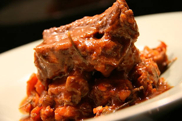 Tender, falling-off-the-bone meat just screams comfort food. This recipe is braised in a red wine, sherry, and tomato-y liquid that adds tons of flavor to the slowly cooked meat. Try serving with rice, pasta, or vegetables.