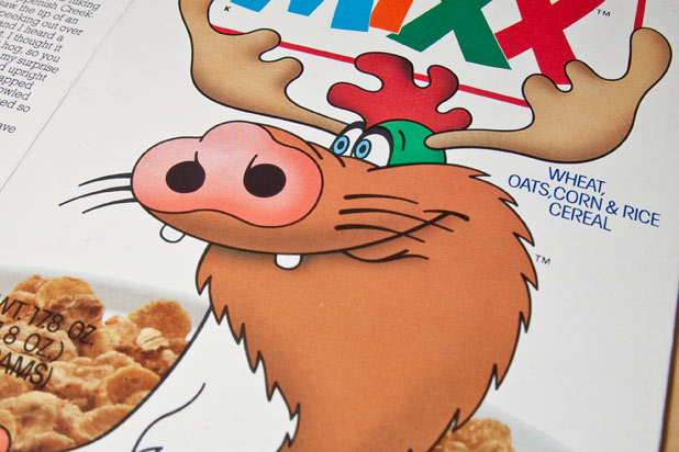 This cereal, introduced by Kellogg's in 1990, was a "big mix" of rolled oats, rice, toasted corn flakes, and whole grain wheat. Their mascot was also a "big mix" of a whole bunch of animals, with the head of a rooster, moose antlers, the snout of a pig, and the fur of wolf. Within two years, he was gone.