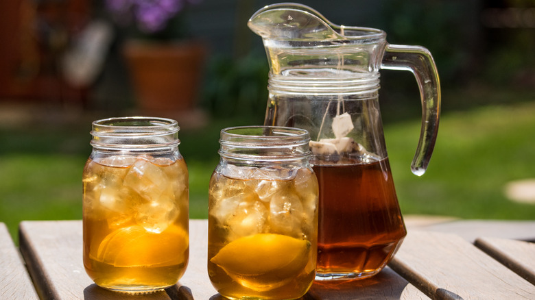 If you've ever spent a significant amount of time in the American South, then you've likely gotten an opportunity to have yourself a refreshing glass of its regional staple: sweet tea (even if sweet tea's origins are not-so-Southern). This popular Southern drink can be made as simply as its name suggests — steep some black tea in hot water, cool it with cold water, and sweeten it with sugar (and perhaps top it off with lemon or mint). But that doesn't mean that you have to always make sweet tea the traditional way. Sometimes putting a twist on this classic drink can make it all the more refreshing, both literally and figuratively. So how would you give sweet tea an upgrade? Mix in some cranberry juice.