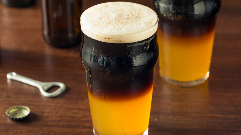 There may come a time when you're in the mood for a beer, but you've got a hankering for two different kinds — something deep and rich and something paler, like a stout and ale. You'll consider them, trying to figure out which one you prefer. Finally, you'll conclude that you'll have both, but you won't be drinking each separately. Instead, you'll mix them to make the famous Black and Tan, a two-toned cocktail that layers dark-colored stout over the lightly-colored ale. Trying to make this drink and get it just right may be intimidating. No need to worry, though — pouring a Black and Tan is simple and quick.