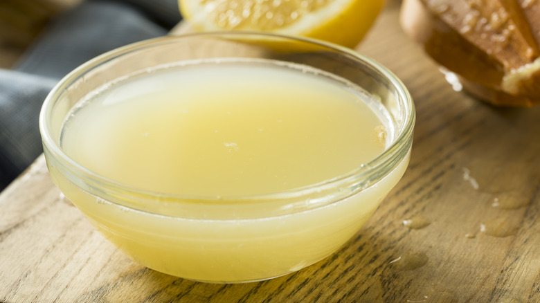 When you use seasoned butter with imitation crab meat, though, a miracle occurs. The fake meat is elevated, and the butter gives it a luxurious flavor, making the imitation meat taste virtually identical to real crab. You can serve the two together by using the seasoned butter as a dip, or by pouring the butter straight over the crab sticks. One of the best things about seasoned butter, too, is that the world's your oyster when it comes to what seasonings you want to use. If you prefer something more herbal, freshly chopped parsley, chives, or tarragon all pair wonderfully with the imitation meat.