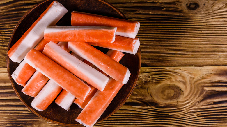 However, while imitation crab sticks are frequently eaten as quick and convenient snacks, it's difficult to figure out what to do with them beyond that. Seafood purists also tend to find imitation crab sticks somewhat lacking in flavor, especially when compared to real crab meat. Luckily, help is at hand for both of these issues. There are a range of hacks that you can perform with imitation crab that can improve on its gentle taste with various additions or cooking methods while simultaneously opening up brand-new ideas to serve them.