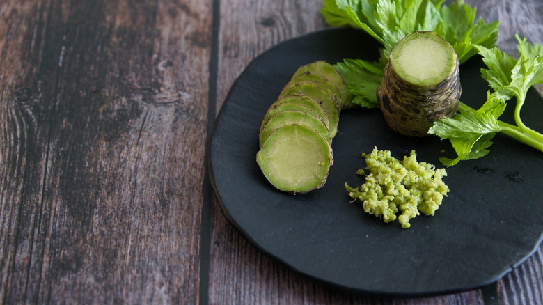 Imitation crab meat pairs naturally with rice, and is a particularly popular ingredient in sushi. However, while the combination of the two provides a gentle duo of flavors, it tends to go heavy on starchy, sugary notes. One way to cut through this is with the addition of wasabi and pickled ginger. Whether you're adding them to imitation crab meat on its own, or dolloping them on top of a stuffed maki roll, the pepperiness of wasabi and sharp spiciness of ginger create a rounded flavor profile.