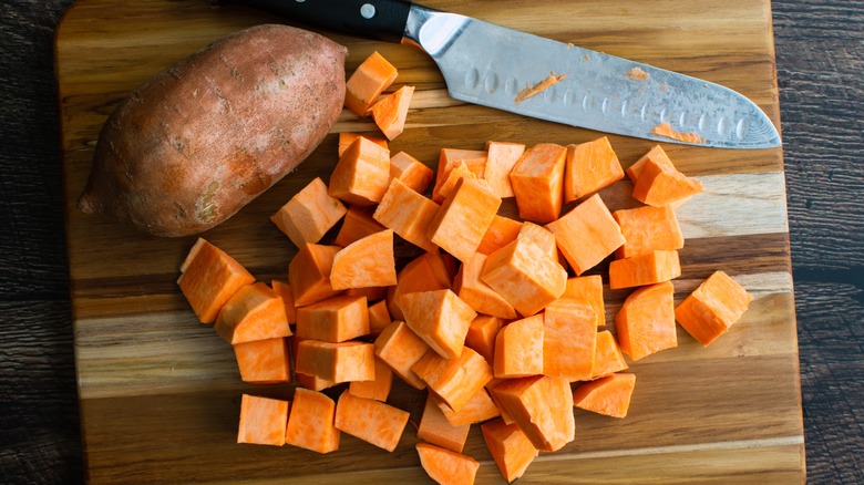 For many people, mac and cheese is the ultimate comfort food. Few dishes have the power to simultaneously soothe and satisfy them the way that cheesy pasta does. Whether it's the quick and simple mac and cheese dinner from the blue box or a more sophisticated grown-up version, the tastes and textures have a way of hitting just the right spot. But there is something to be said for experimental versions of the classic comfort food — with the addition of sweet potatoes being one of the best ways to amp it up.