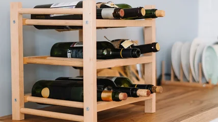 Storage can be an issue in the kitchen, especially for miscellaneous items. A common offender? Wine bottles. Typically too tall to fit on a standard cabinet shelf and too long to be stored sideways, wine bottles are tricky to stash. In kitchens that don't have a wine refrigerator, bottles seem to find a home wherever there's an open surface, be it a counter or a bar cart.