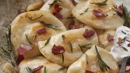 Spring and summer are the obvious stars of seasonal cooking — after all, it's hard to argue with fresh fruits and vegetables. But winter has culinary charms all its own: the warmth and aroma of freshly-baked breads and pies; the smokey-salty-sweetness of preserved meats like bacon and andouille sausage; different-but-no-less-wonderful jarred versions of summer's bounty in the form of fruit preserves, pickled vegetables, and canned tomatoes; and hearty soups and stews made from root vegetables like onions, carrots, parsnips, and potatoes. Few things are more deeply satisfying than a well-made potato soup, after all — and the next time that dish strikes your fancy, consider enriching it with those magnificent little stuffed dumplings known as pierogis, boiled and fried crisp in butter.