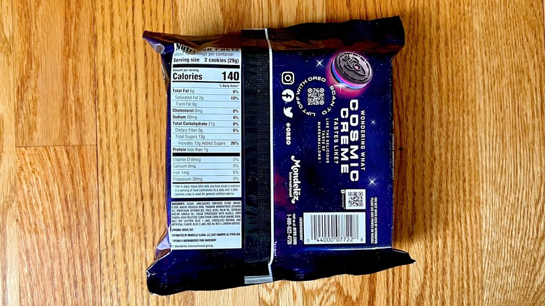 OREO Space Dunk comes in 10.68-ounce bags, which retail for $4.58. Based on the best-by date on the bag I received, they should be devoured within three months or so.