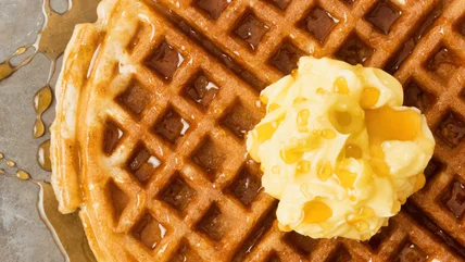 Chicken and waffles anyone? Melt a generous amount of maple butter atop a heaping bounty of fried chicken and fluffy waffles for a satiating meal booming with savory, sweet, and rich flavors and interconnecting textures for an intriguing mouthfeel in each fork full.