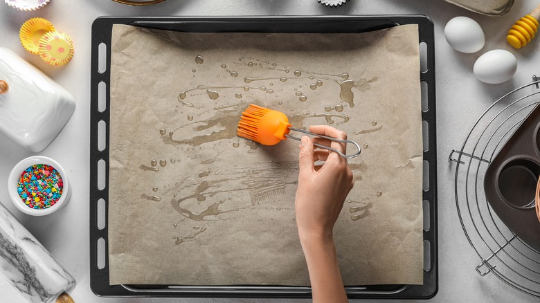 Buying a full baking set may seem tempting, but it's not exactly cost-effective. Using parchment paper to create a collar is a clever way to make a tall cake pan of your very own. All you need is the paper, butter, and your existing cake pan.