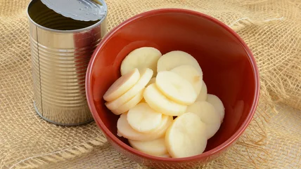 Turning canned potatoes into potato chips is a fairly simple process. Buying pre-sliced cans of potatoes is easier, as they have a larger surface area for frying. If you have whole canned potatoes, you will need to slice them thinly into chip-like shapes. Drain your can of potatoes and dry them with a paper towel. You'll want to remove as much moisture as possible before frying to ensure even cooking on all sides.