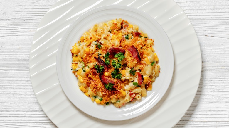 Once you've made your mac and cheese using the pan technique, you'll be able to indulge in a cheesy and crunchy meal that's sure to be satisfying. However, if it's still not crunchy enough, there are ways to amp up the crisp by making simple adjustments. If you haven't already, consider generously sprinkling panko or breadcrumbs over your mac and cheese. This addition introduces an extra layer of both crunch and flavor. For an even more gratifying crunch, you can't go wrong with bacon bits. Cook up some crispy bacon, break it into bits, and either mix it into the mac and cheese or generously scatter it on top before baking.