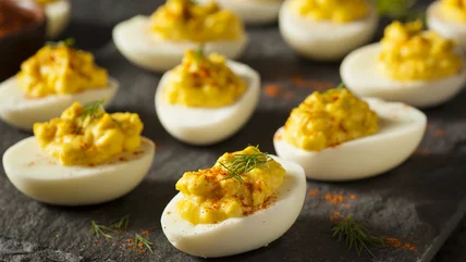 For many, the best part about deviled eggs is their texture. The smooth creaminess of a whipped yolk cradled in a delicate egg white makes for a wonderful, bite-sized morsel. Add a pinch of paprika as a simple garnish, and you'll have a mouthwatering snack. These delectable — and colorful — treats are the perfect addition to any appetizer tray or opulent brunch spread.