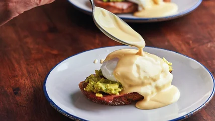Though they do break down well, hard-boiled egg yolks can't be emulsified since emulsions can only form between liquids. Therefore, instead of combining them with the other hollandaise ingredients through heat and vigorous whisking, they have to be blended together. This doesn't technically result in a true hollandaise, but you'll still be able to serve the sauce in the same way.