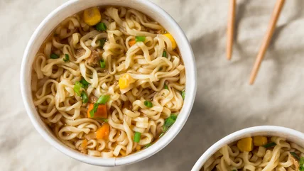 To amp up the flavor of your DIY ranch instant ramen, try cooking the noodles in chicken broth instead of water. After stirring in the ranch seasoning you can opt to add a bit of butter to make it extra creamy and delicious. The combination of the butter, chicken broth, and ranch seasoning will make the broth taste significantly more rich and filling than if just using plain water. Take your noodles from college dorm to restaurant level by topping them with scallions, egg, edamame, bean sprouts, bok choy, sesame seeds, or cilantro. You can also add some more protein like shredded chicken which pairs perfectly with the tangy flavor of the ranch seasoning (who doesn't love chicken with ranch?).