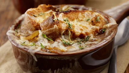 Is there anything more comforting and soul-soothing in the world than French onion soup? A hearty bowl topped with a thick slice of toasted baguette smothered in gooey melted cheese is one of life's greatest pleasures. The hot, sweet, salty, cheesy soup is especially ideal if you're sick or have had a particularly tough week.