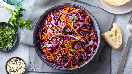 If you're looking to liven up your coleslaw recipe there are a few ways to take the flavor up a notch. If you're satisfied with your coleslaw's sweetness but still desire more tang, try adding chopped pickles to the slaw and pickle juice to the dressing. It's a great way to bring a mouth-watering sour crunch to your slaw. Not to mention, pickles are already a classic topping and condiment for barbecue and cookout dinners. Carrots will add more even color to your green-and-purple cabbage slaw, making for an eye-catching and nutrient-rich coleslaw.