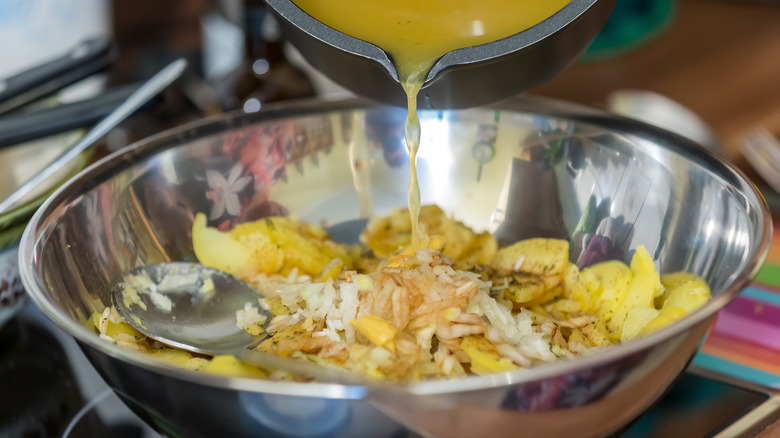 While the dressing is the main element distinguishing these two potato salads, the differences in these dishes extend even further. Austrian potato salads typically keep additions minimal, using simple seasonings and garnishes like salt, pepper, and chives to enhance the luscious potatoes. Yukon Golds are commonly used as the base of this dish — their smooth, creamy flavor adds balance to the dressing's light ingredients, which easily cling to the starch. Other mild ingredients, such as onions, broth, and mustard, can also add flavor, resulting in a deeper and more complex taste as the potatoes absorb all these elements. Chicken broth is standard, but beef or vegetable broth can be used as well.
