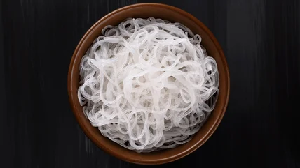 Glass noodles are often used when cooking East and Southeast Asian dishes. The noodles are made from mung bean flour, water, and a little bit of salt, and they cook up pretty quickly. In fact, they don't need any heat at all; you just need to soak the noodles in a bowl of warm water for about 10 minutes. Then, the delicate noodles can be used in stir-fries, soups, and hotpot. If you wind up with extra food after your meal, you may want to save some for the future.